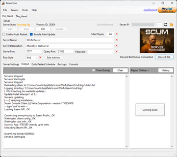 - Automated Updates: Keep your server up-to-date with automatic checks and installations of the latest SCUM updates.