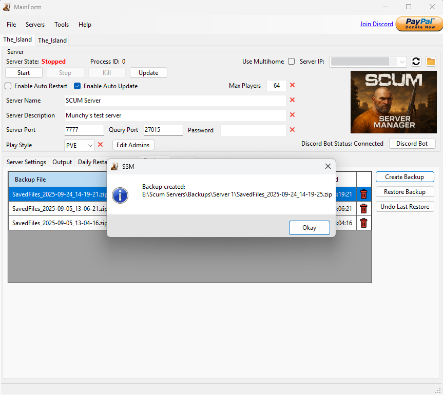 ServerSettings.inidirectly within the application. - Backup and Restore: Create backups of your server data and restore them when needed to prevent data loss.